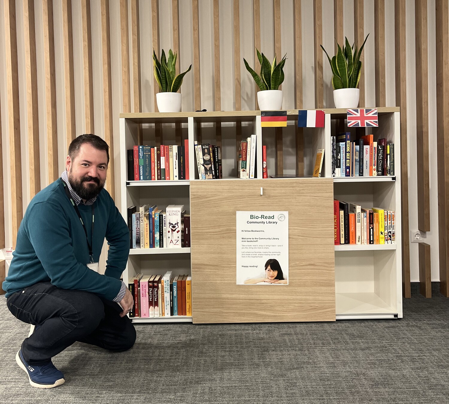 “Many of us being lesser bookworms liked the idea to fill the empty shelves in the office and figured we can create something lasting for our colleagues sharing the office space with us,” said Daniel Balatoni, a procurement manager for Bio-Rad.